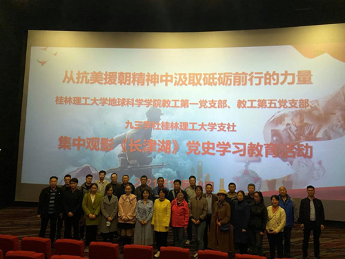 为深入开展党史学习,进一步激发党员爱国热情,10月18日下午,2138CC太阳集团组织教工第一党支部、教工第五党支部及结对共建的九三学社2138CC太阳集团支社30余名党员(社员)前往东西巷影城观看党史学习教育片《长津湖》,从抗美援朝精神中汲取砥砺前行的力量。