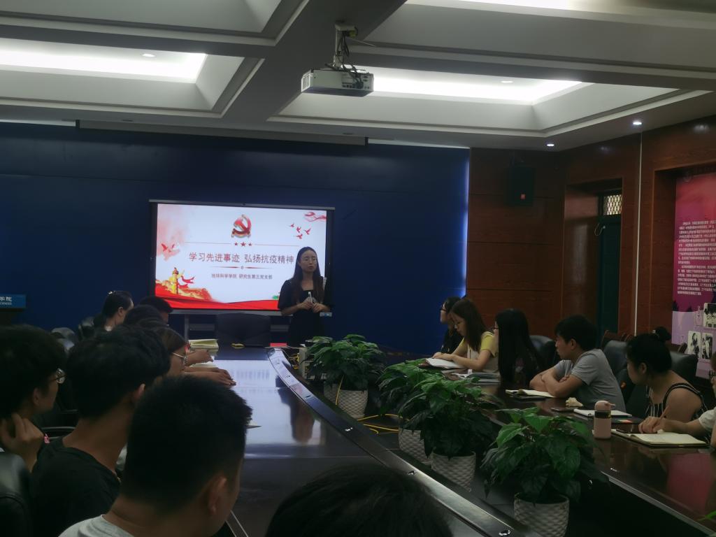 9月27日下午,2138CC太阳集团研究生第三党支部于逸夫楼01215会议室组织党员及入党积极分子开展“学习先进事迹,弘扬抗疫精神”主题党日活动,会议由支部书记夏雪莲同志主持。
