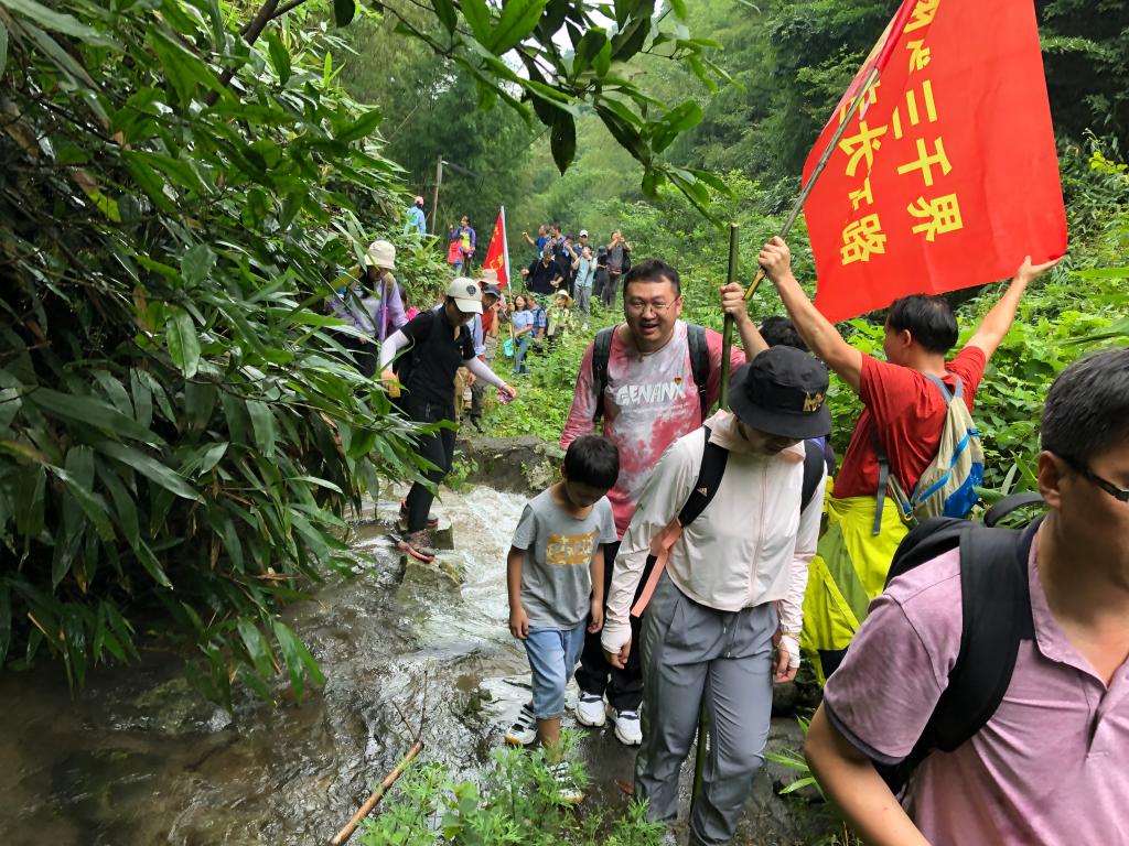接着,大家来到了半山岭,开始了“翻越三千界,重走长征路”徒步爬山活动。跋山涉水历时三小时,党员们终于翻越三千界这座高山,大家切身体会到了红军翻越越城岭的艰辛和他们为救国救民,不惧艰难险阻,不惜付出一切牺牲的长征精神。