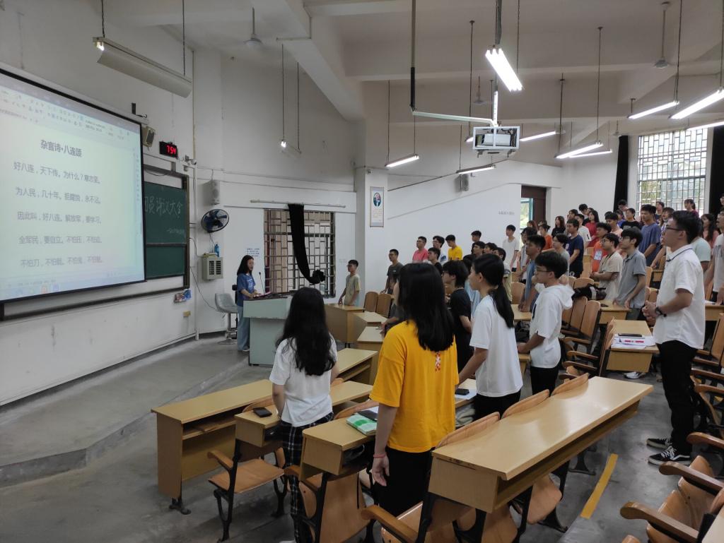 活动以大一年级早自习为平台,充分发挥入党积极分子的带头作用,由他们担任领读人,带领大一学生共同诵读经典诗词与寄语,包括梁启超先生的《少年中国说》、毛泽东同志的《沁园春·雪》《七律·长征》、习近平总书记对青年的殷殷寄语等。领读人徐锐同学说:“通过最近的晨读活动,我们对党史、对历史积淀的精神、对新时代青年生逢盛世肩负重任有了更深入的理解和领悟。我们必将传承和发扬伟大精神,立大志、明大德、成大才、担大任。”