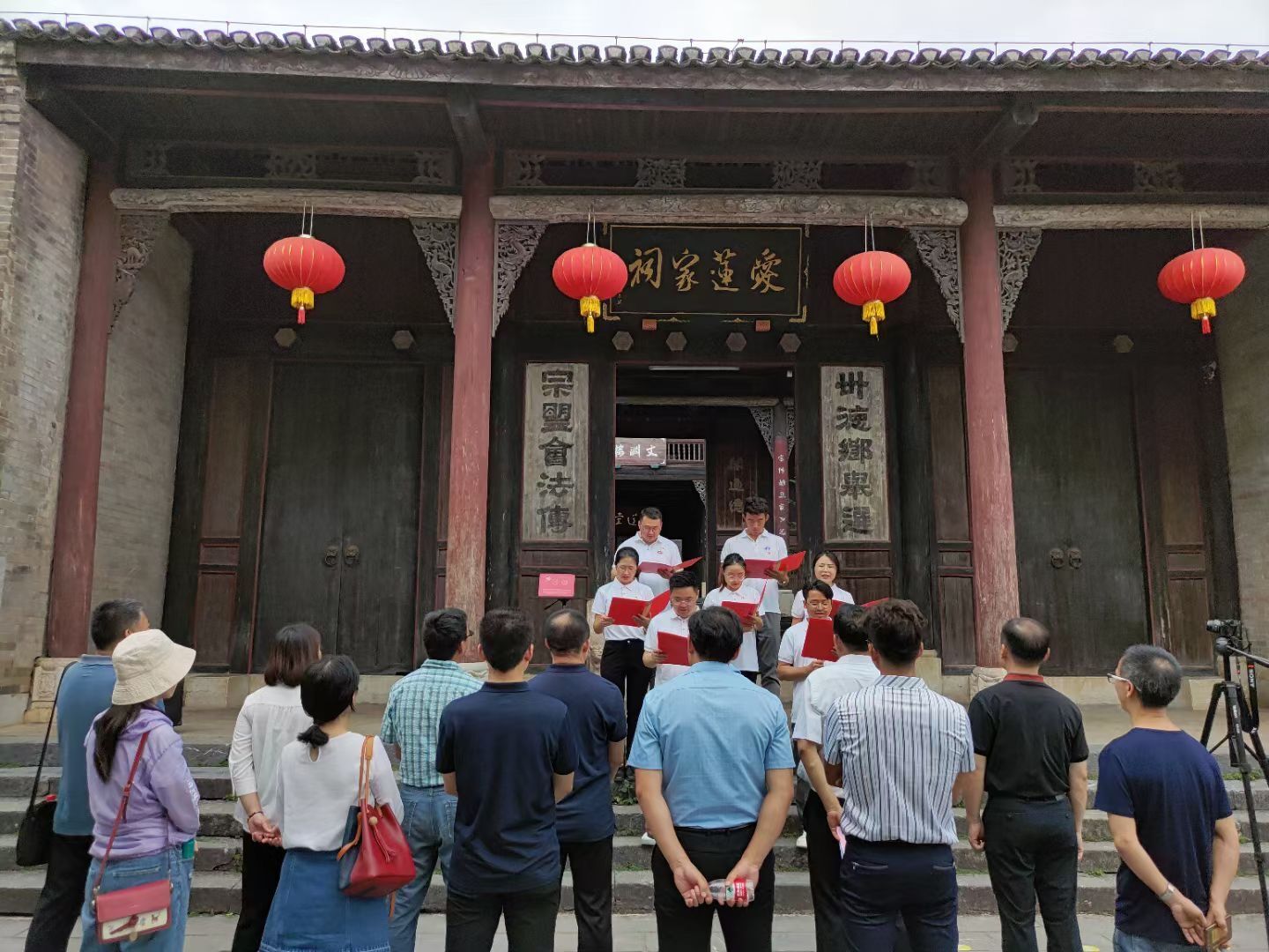 江头村是年代久远、拥有深厚廉政文化积淀的古村落,所有出仕的官员都是清官,清廉的名声流传至今,被称为“百年清官村”。它提倡为官清廉,为民守纲,崇尚儒学,是当今时代值得挖掘和借鉴的品德教育的好教材。参观完江头村后,学院党委书记曹文献从江头村廉政文化历史、廉政与莲花的关系、廉政教育的现实意义与要求三个方面给大家现场讲授了一场生动的微党课。他指出,所有党员领导干部、老师们要不断加强党性修养、加强道德建设、坚守职业道德,真正将廉洁的政治本色内化于心、外化于行。接着,教师党员代表在爱莲家祠前重温经典、集体朗诵《爱莲说》,立志把对廉政文化的熏陶和感受融进血液里,化在行动中。
