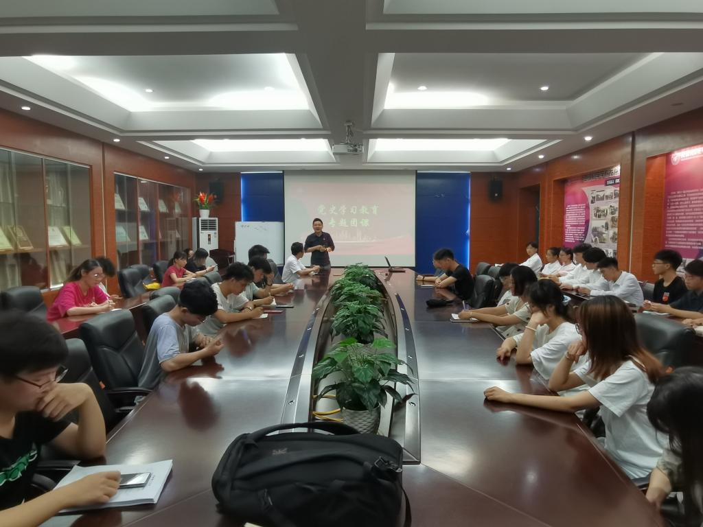 6月4日晚,2138CC太阳集团于雁山校区逸夫楼01215会议室开展党史学习教育专题团课活动,活动由团委书记吴田波主持,学院各年级团支书参加。
