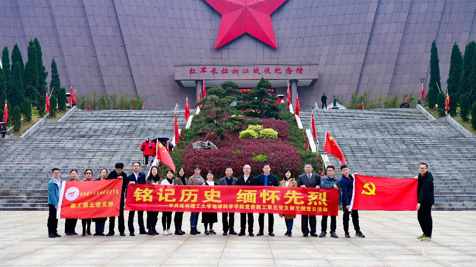2021年是中国共产党建党100周年,在党的百年寿诞之际,正值清明,为缅怀革命先烈,进一步提高政治站位,扎实开展党史学习教育,引导支部党员学党史、悟思想、办实事、开新局。3月26日,教工第五党支部跟随学院党委在全州红军长征湘江战役纪念园开展“铭记历史、缅怀先烈”主题党日活动,支部全体党员参加了本次活动。