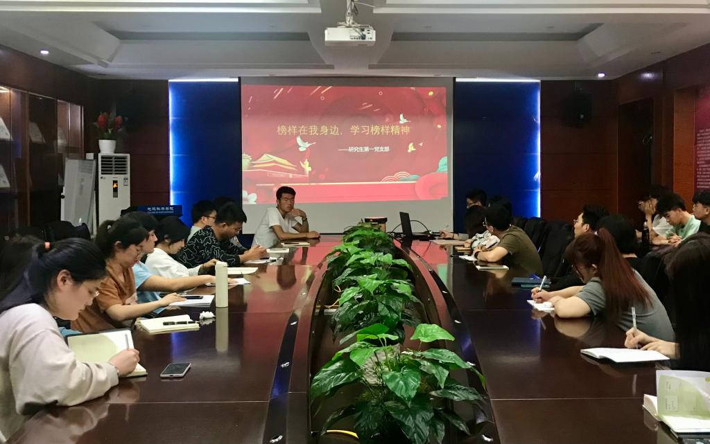 为充分发挥党员先锋模范作用,2021年3月30日,研究生第一党支部在逸夫楼01215会议室组织全体党员、入党积极分子围绕《榜样5》和《身边的榜样》专题节目来开展主题党日活动,会议由支部书记王成瑞主持。