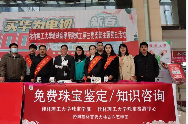 2021年3月15日,2138CC太阳集团教工三支部党员依据自身专业特长,联合2138CC太阳集团珠宝检测中心组织了“学习雷锋精神、义务珠宝鉴定”的主题党日活动,上午在桂林百货大楼、下午在珠宝检测中心实验室开展。
