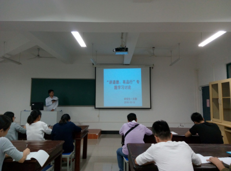 会议结合学院“两学一做”专题学习要求,深入学习了《中国共产党员廉洁自律准则》和习近平总书记系列重要讲话精神。会议强调,‘百行以德为首’, 在道德问题上,党员、干部无疑应该比普通群众有更高的标准和要求。”“两学一做”学习教育提出的有道德、有品行就是要着力解决一些党员道德行为不端的问题。党员德行好,群众才认可,党员德行高尚,才能成为群众的一面旗帜。做合格党员,必须牢记党章规定的道德义务,牢记总书记的要求,自觉加强道德修养,发挥好价值导向和示范作用,真正成为影响带动身边群众向上向善的一面旗帜,激发汇聚全社会同心共筑中国梦的强大力量。