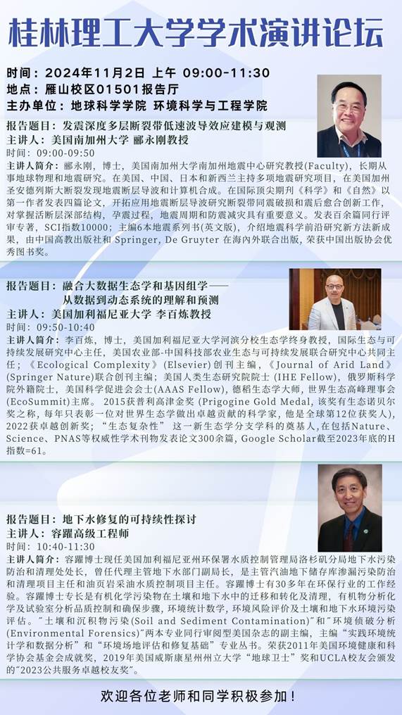 【学术报告预告】美国加州大学郦永刚教授、加利福尼亚大学李百炼教授、容躍高级工程师学术报告
