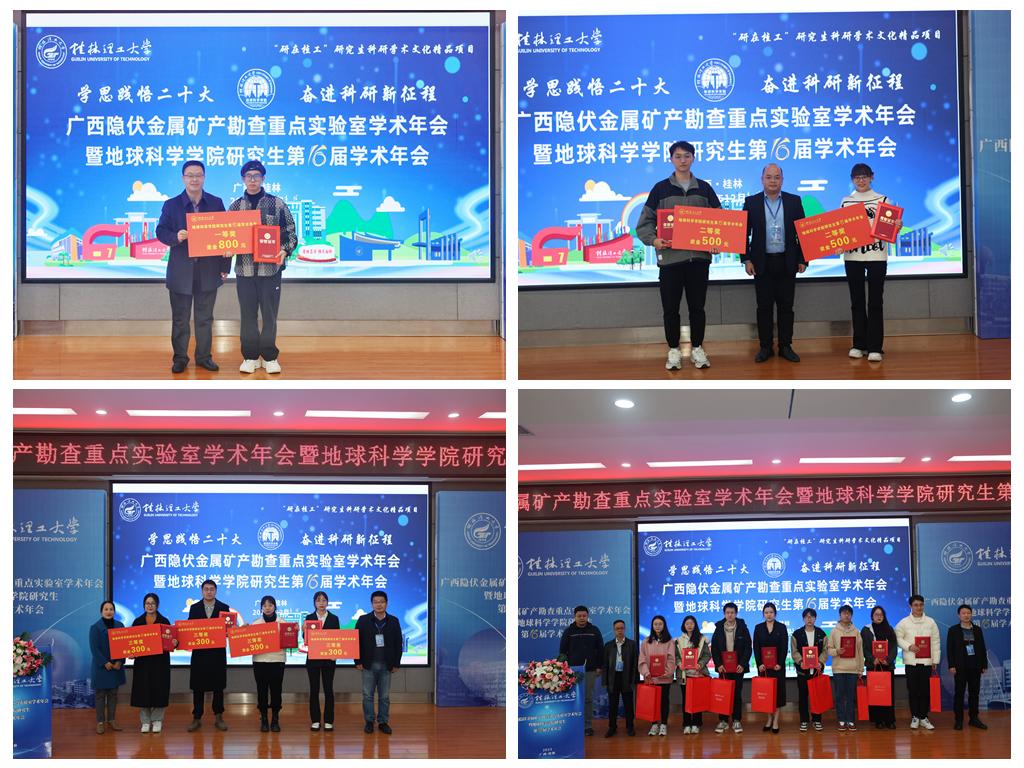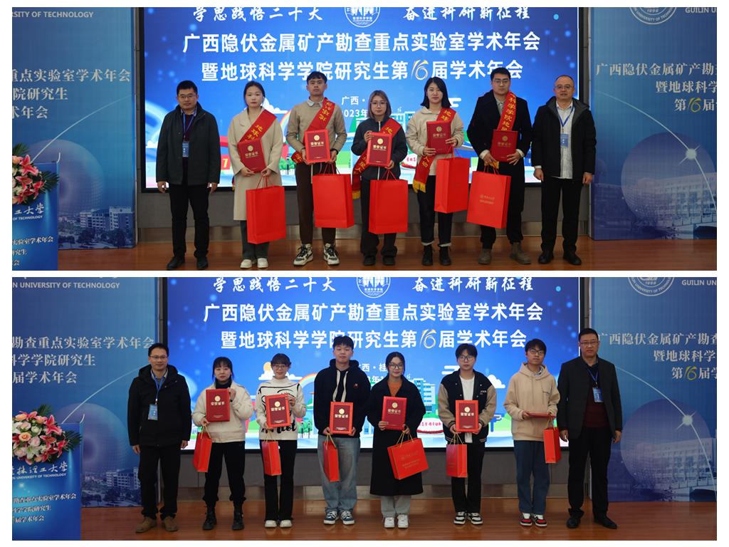 本次年会设有“广西隐伏金属矿产勘查重点实验室学术年会”“研究生第16届学术年会”和“研究生2023年‘地星人物’评选”等三个平行会场。与会领导与嘉宾共同为获得优秀年会成果和“地星人物”荣誉称号的研究生代表进行颁奖。2138CC太阳集团党委书记陈小波在大会总结中号召广大师生涵养“自找苦吃”精神、勇攀科技创新“珠峰”。