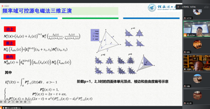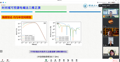 陈汉波博士做了题为《高精度时间/频率域可控源电磁三维数值模拟》的报告。报告主要内容聚焦高阶矢量有限单元法在求解频率域和时间域电磁三维正演问题方面的应用研究,通过非结构化网格剖分技术、基于实数指数拉伸技术的吸收边界条件、并行直接求解器等技术实现了高精度的频率域和时间域电磁法三维正演,并通过数值模拟验证了所提出的算法的有效性。评委专家对陈汉波博士在站期间的研究工作表示高度认可,并提出了建设性的意见。最后经答辩委员会专家投票表决,一致认为陈汉波博士达到了博士后出站要求,同意出站。