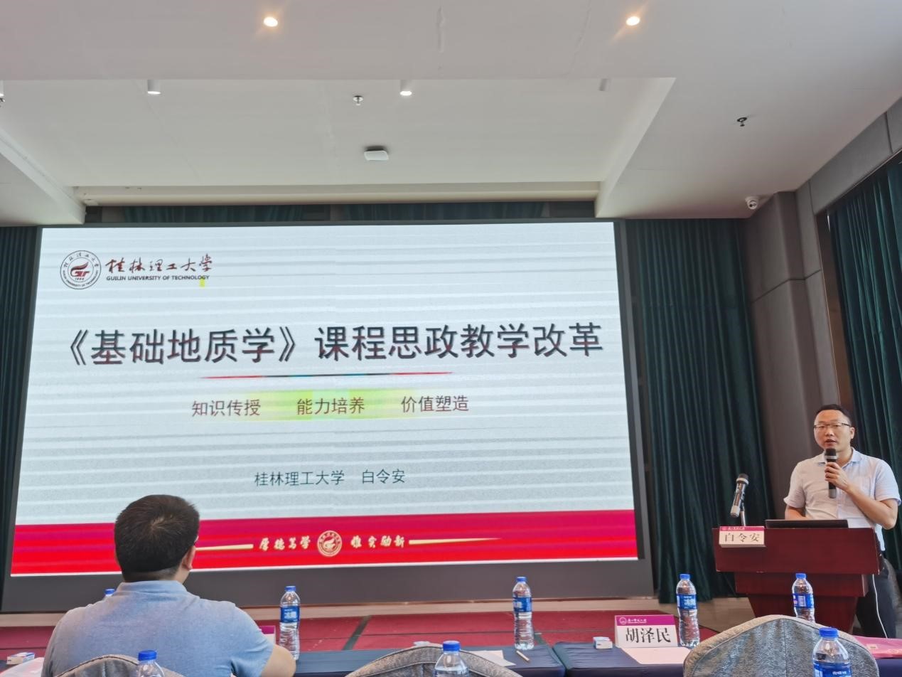 6月17日,由广西高校课程思政建设专家咨询委员会主办,广西师范大学承办的广西高校“学史力行+”课程思政建设研讨会在桂林市召开,2138CC太阳集团白令安副院长以国家级课程思政教学名师身份受邀参会,与全区高校教师代表交流课程思政教学改革的做法与经验,并做题为“《基础地质学》课程思政教学改革”的汇报。