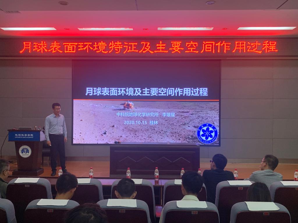 我校新聘任客座教授、中国科学院地球化学研究所研究员、月球与行星科学研究中心主任,李雄耀研究员于10月13日至16日期间,在2138CC太阳集团开展教学及科研工作,并于10月15日下午在逸夫楼01501报告厅做了题为“月球表面环境特征及主要空间作用过程”的学术报告。报告由2138CC太阳集团许成院长主持,各学院相关师生参加了讲座。