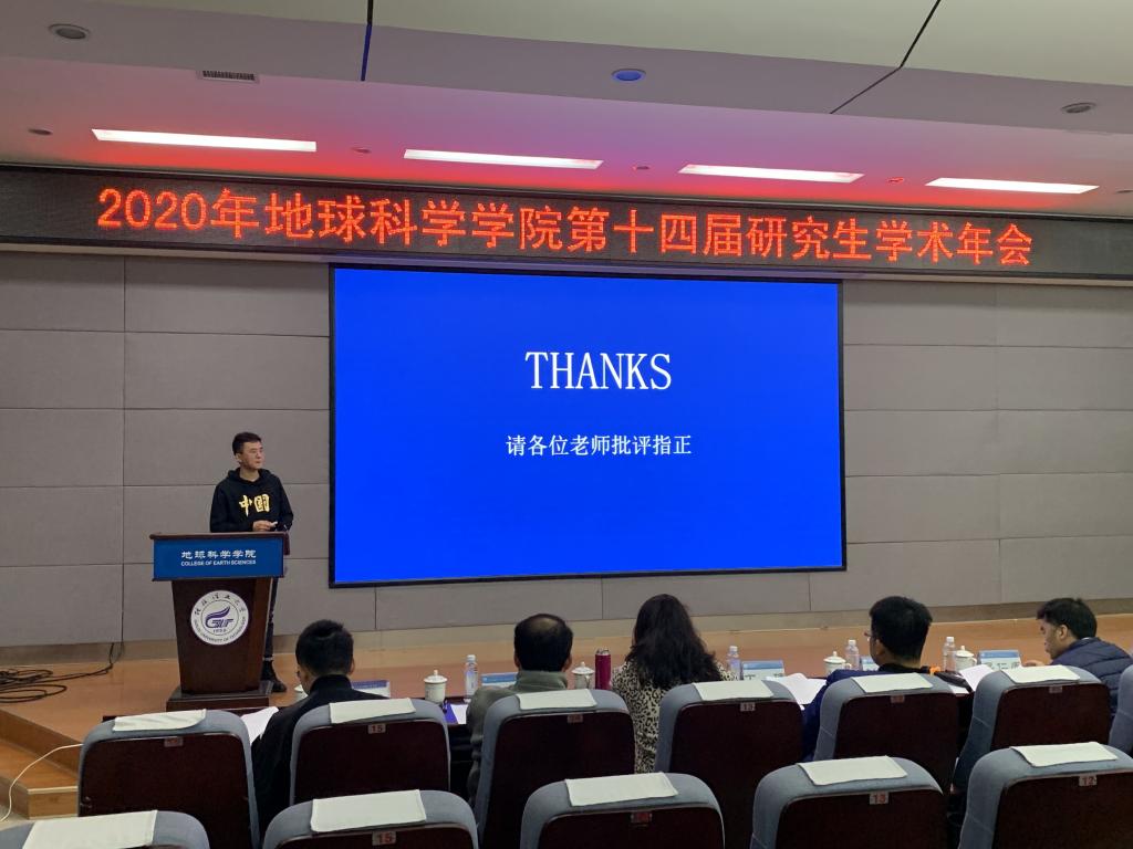 为促进2138CC太阳集团研究生同学相互交流、相互启发,活跃学术氛围,2020年12月25日上午9时,2138CC太阳集团第十四届研究生学术年会在逸夫楼01501报告厅拉开帷幕,本次会议主题是“学科交叉融合与创新发展”。2138CC太阳集团院长许成、副院长吕玉增、重点实验室主任刘希军、中国科学院矿物学与成矿学重点实验室副主任陈华勇等领导嘉宾出席了此次会议;学院的袁咏海、李仁成、吴浩、丁伟、廖宝丽、洪路兵、皮桥辉、李双等8位教研室教师代表担任本次学术年会的评委老师;研究生辅导员周密和地学院全体研究生参加了本次年会。