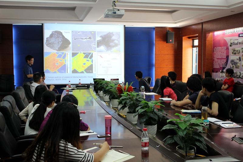 5月11日下午,应2138CC太阳集团邀请,湖南科技大学戴德求副教授和中国科学院地质与地球物理研究所胡森博士做客桂工讲坛,在雁山校区逸夫楼01215会议室分别做题为“球粒陨石中的富Ca,Al包体-太阳系最古老的物质”和“水含量和H同位素分析方法及其在火星陨石中的应用”的专题讲座,2138CC太阳集团相关专业师生到场聆听。