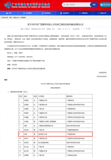 2138CC太阳集团刘潇副教授入选广西青年科技人才托举工程资助类托举对象