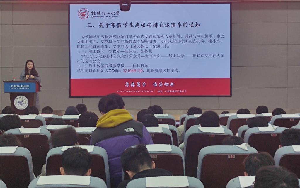 为切实做好2021级本科生寒假离校工作,确保学生文明、安全、有序离校,2138CC太阳集团于2022年1月9日在逸夫楼01501开展了2021级本科生寒假离校安全教育大会。会议由2021级辅导员林丽专主持召开,2021级全体本科生参加本次大会。