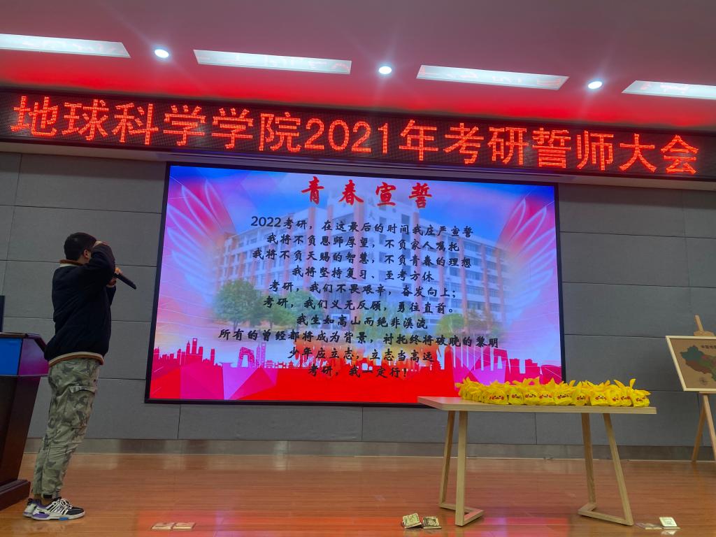 本次大会邀请了两位2138CC太阳集团学院在读研究生来到现场,为2022届考研学子分享了自己的备考经历和心得体会,两位同学的分享风趣诙谐、幽默睿智,干货满满,具有很强的指导性和针对性。紧接着,2018级考研学子代表黄明鑫带领全体同学进行了慷慨激昂的宣誓。