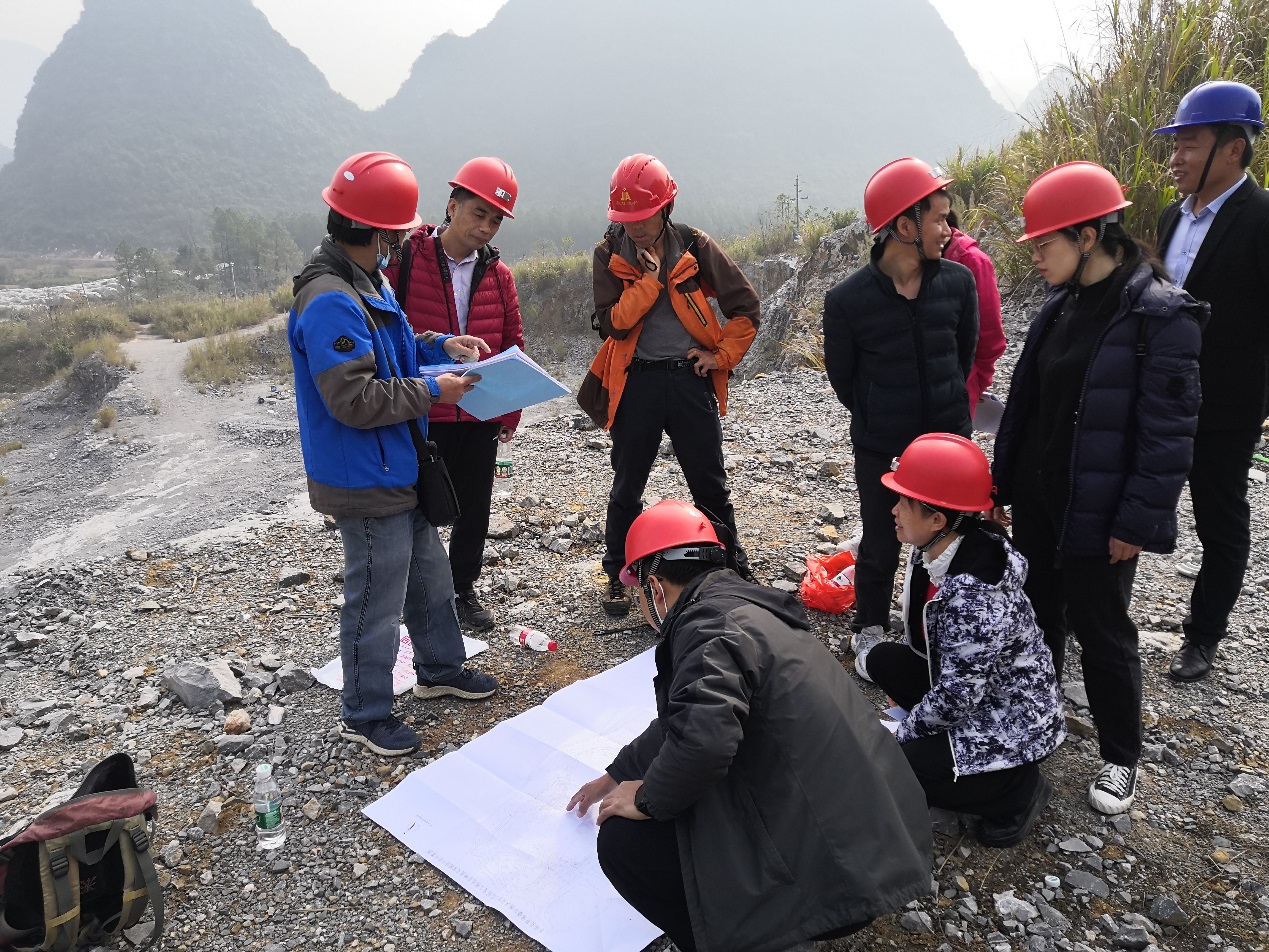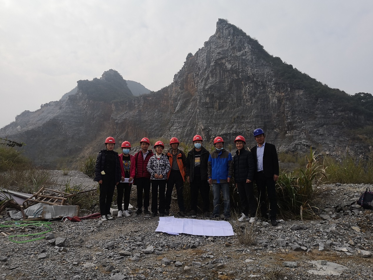 2021年12月16日,2138CC太阳集团自然地理与资源环境教研室张桂林、李仁成、蔡湘文、钟雪梅、邵亚、韦家善、王静、卢倩倩八位老师以及校友广西壮族自治区二七一地质队队长助理许少伟前往永福罗锦镇安棉采石场、临桂天鹅堡小区旁横山里采石场现场备课,为下学期开设的《地质环境治理与土地复垦实习》实践课程做前期准备工作。
