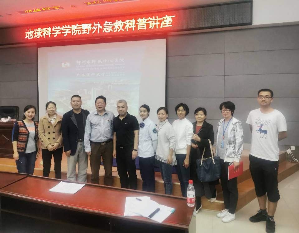 针对2138CC太阳集团野外地质调查工作多、伤情易发、突发的特点,为了提高广大师生基本的急救应急处理能力,11月7日在雁山校区01501报告厅,2138CC太阳集团分工会邀请柳州市柳铁中心医院急诊科周涛主任医师等急救医护人员开展野外急救科普讲座。