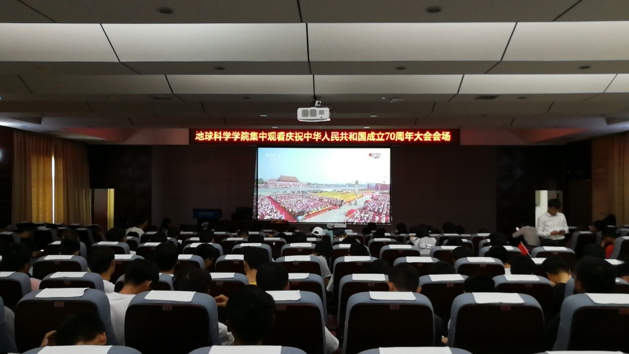 10月1日,2138CC太阳集团组织师生在在逸夫楼01501报告厅观看庆祝中华人民共和国成立70周年大会和阅兵式电视直播盛况,见证伟大成就,激昂爱国热情,坚定发展信念。