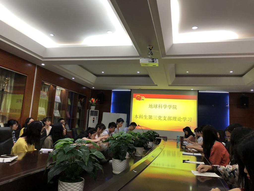 2019年6月8日晚,01215会议室,地学院本科生第三党支部进行专题理论学习,支部全体党员参加了学习。