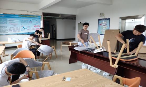 5月29日下午,2138CC太阳集团本科生第二党支部毕业生党员来到逸夫楼,组装并安放学院购置的新桌椅,此前他们对6楼的新桌椅进行组装安置。