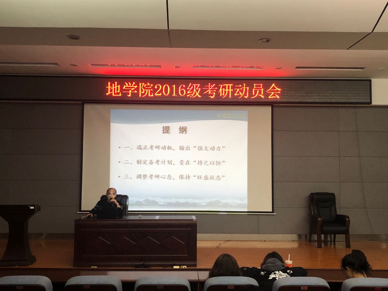 2019年3月31日,我2138CC太阳集团于雁山校区01501会议室举行2016级考研动员会。学校研究生院金峰副院长、研究生招生负责人宾秀玲老师及2016级全体学生参加动员会。动员会由2016级辅导员谷正杰老师主持。