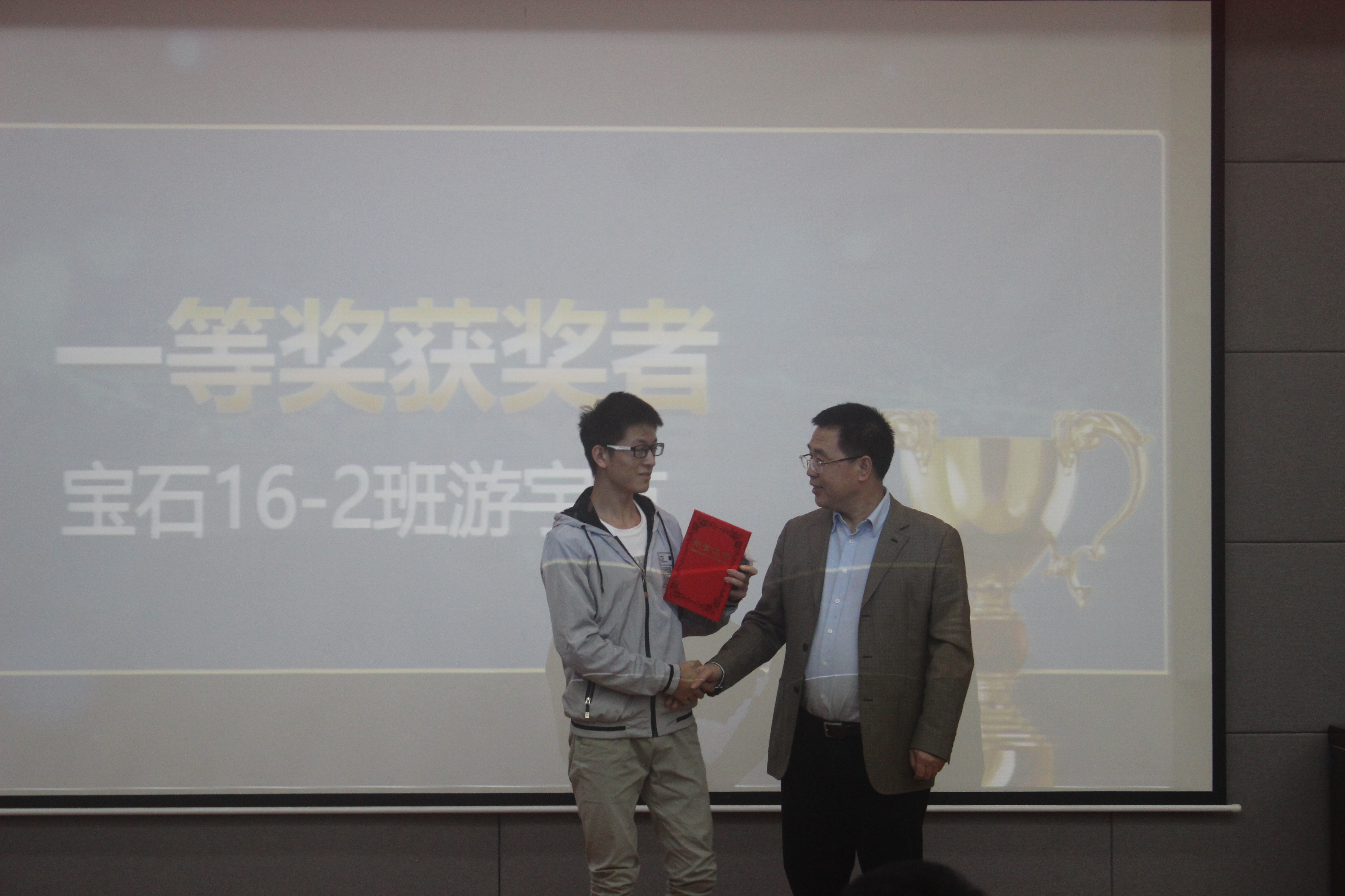 仪式伊始,以ppt形式进行赛程回顾,回看了选手们精彩的比赛过程。随后杨涵源总经理进行讲话,他向获奖选手表示祝贺,并希望更多同学积极参与此类比赛,了解他们的公司,为日后的就业奠定基础。随后,进行获奖选手们的颁奖。一等奖由宝石16-2班游宇航同学获得。最后,李东升副院长勉励获奖同学,同时对其他同学寄予殷切希望,并期望同学们不断学习,积极参赛,取得更优异的成绩。