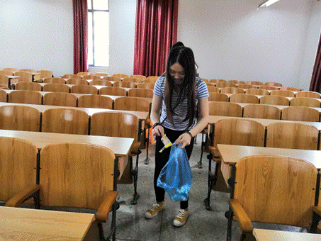 六栋教学楼共有六层,各支部党员分工合作,对每层楼的各个教室进行垃圾清理和黑板清洁。整个活动持续了约一小时,尽管天气炎热,各位党员同志还是仔细检查每个角落,努力为大家营造良好的学习环境。同时,一些党员同志还呼吁大家今后自觉带走个人垃圾,做文明桂工人。