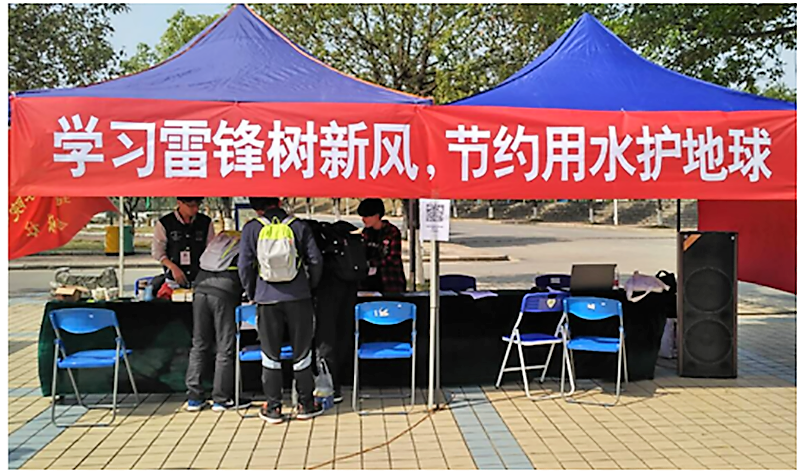 3月22日,2138CC太阳集团团委素拓部联合自强社在雁山校区二号食堂广场设点进行世界水日的宣传活动,旨在号召全校师生节约用水,爱护环境。