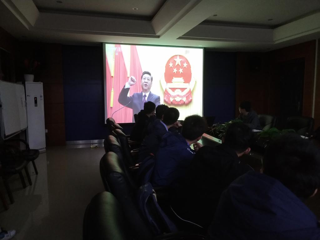 会议分为两个部分,首先全体党员一起观看视频《历史选择了习近平》。视频主要讲述了2018年3月17日,十三届全国人大一次会议举行全体会议,选举产生了新一届国家机构领导人员,习近平全票当选为中华人民共和国主席、中华人民共和国中央军事委员会主席。这充分体现了党的意志、人民意志、国家意志的高度统一,充分反映了全党全军全国各族人民的共同愿望和心声。随后,党支部书记吴田波带领大家共同了解两会重大事件,重温两会热点,党员同志们纷纷从个人学科背景出发,谈学习工作,从身边改革出发,谈体会心得,大家畅聊己见。围绕习近平重要讲话,宪法修改、国务院机构的改革等,大家踊跃交流意见,气氛热烈。