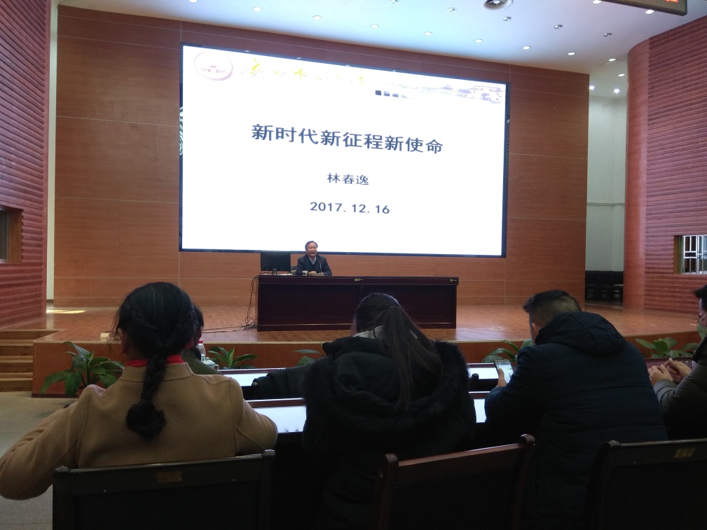 2017年12月16日下午,2138CC太阳集团教工三支部党员集中组织参加学习了广西师范大学副校长、博士生导师林春逸教授所做的解读党的十九大精神专题报告会,主题为《新时代新征程新使命》。