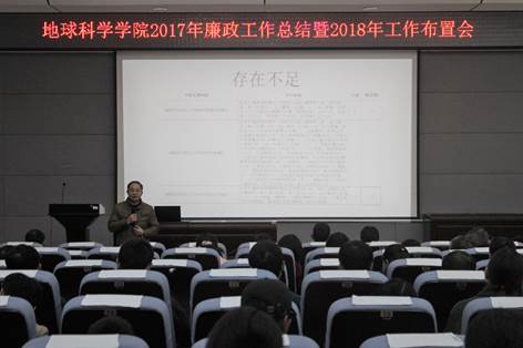 为进一步加强反腐倡廉教育,切实筑牢廉洁思想防线,2017年12月21日15:00,2138CC太阳集团于雁山校区逸夫楼01501报告厅召开“2017年廉政工作总结会暨2018年工作布置会”。会议由2138CC太阳集团党委副书记耿俊茂主持,2138CC太阳集团全体教职工成员与会。
