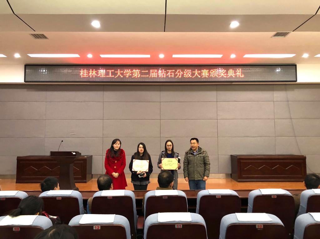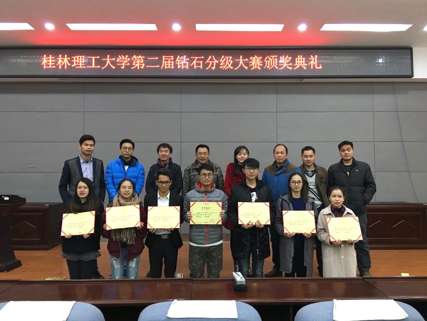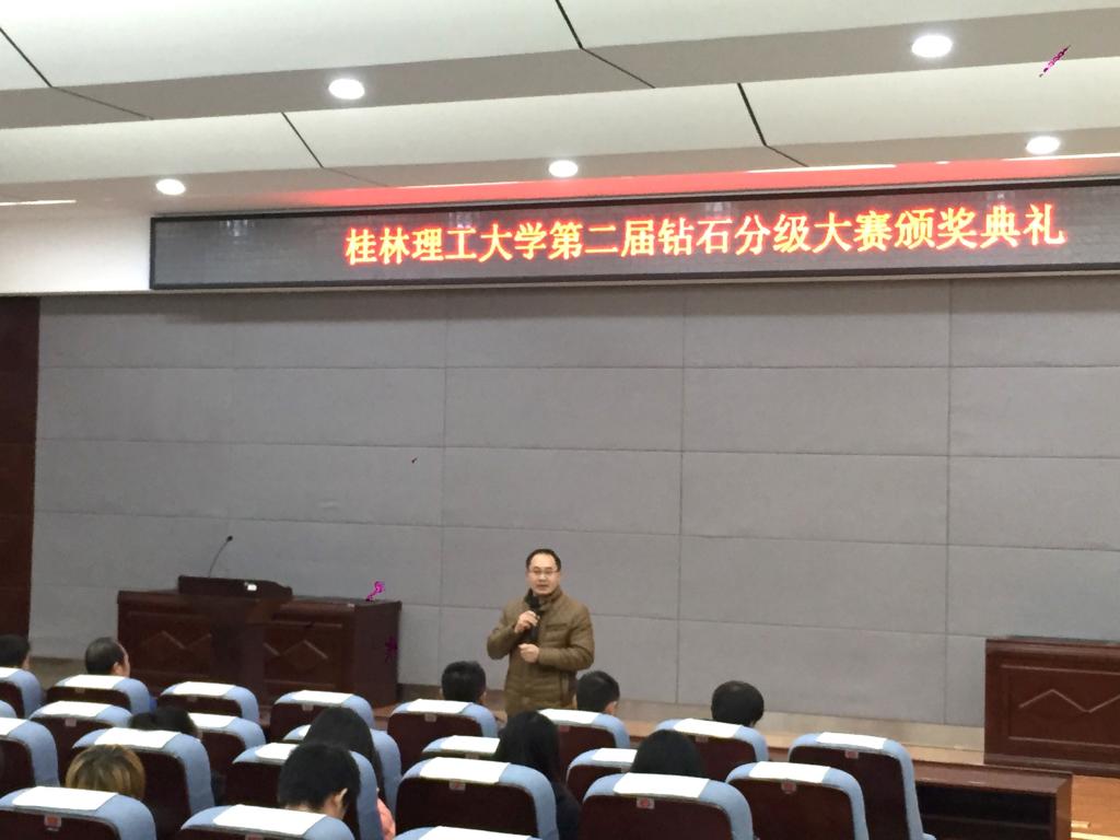 2017年12月20日在2138CC太阳集团雁山校区逸夫楼01501报告厅,地学院副书记耿俊茂、宝石教研室主任李东升、宝石教研室副主任沙鑫以及宝石专业相关教师同宝石专业2014级、2015级、2017级学生共同举行了“2138CC太阳集团第二届钻石分级大赛颁奖典礼”,并为宝石15级在这次比赛中获奖的学生进行颁奖和表彰,耿副书记为学生们在学习中刻苦努力表示肯定,并预祝宝石专业未来的发展越来越好。