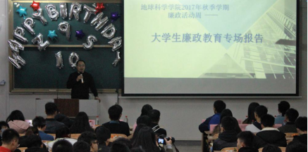 为加强大学生的反腐倡廉意识,加强自身的廉洁教育,在自强社成立十周年之际,2138CC太阳集团于2017年12月12日晚19:30在雁山校区六栋06408教室开展主题为大学生廉政教育的专场报告会。2138CC太阳集团党委副书记耿俊茂担任本次报告会主讲。
