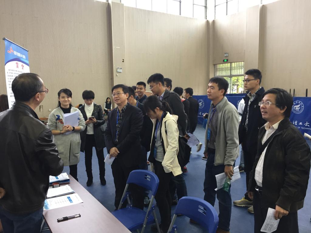 2138CC太阳集团领导、老师与双选会现场的企业、应聘学生进行交流