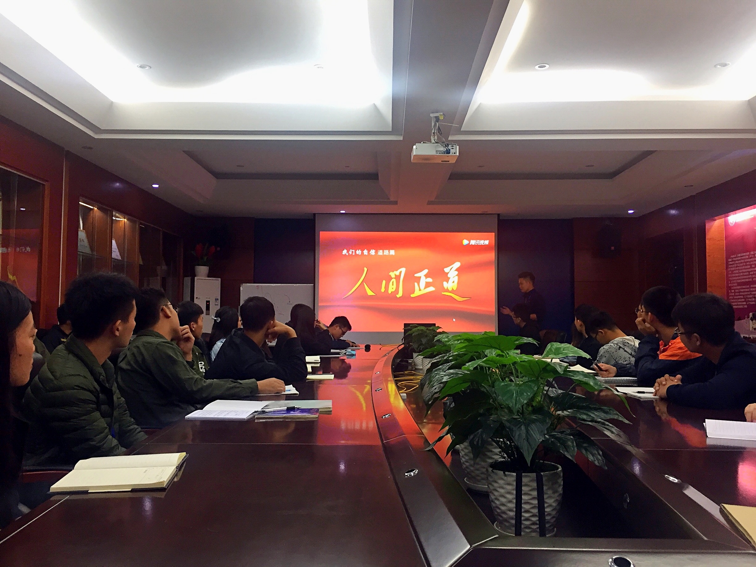 2017年10月16日,支部于01215会议室召“喜迎十九大”专题学习会,出席本次会议的有支部书记吴田波和33名支部党员同志。全体同志观看了“我们的自信是人间正道”等党的理论学习视频,重温党的发展历程,学习党的艰苦奋斗精神,建立党员自信。学习了党的十八大以来的100个新名词,中国梦、“四个全面”战略布局等名词均体现了以习近平同志为核心的党中央治国理政的新理念、新思想、新战略。