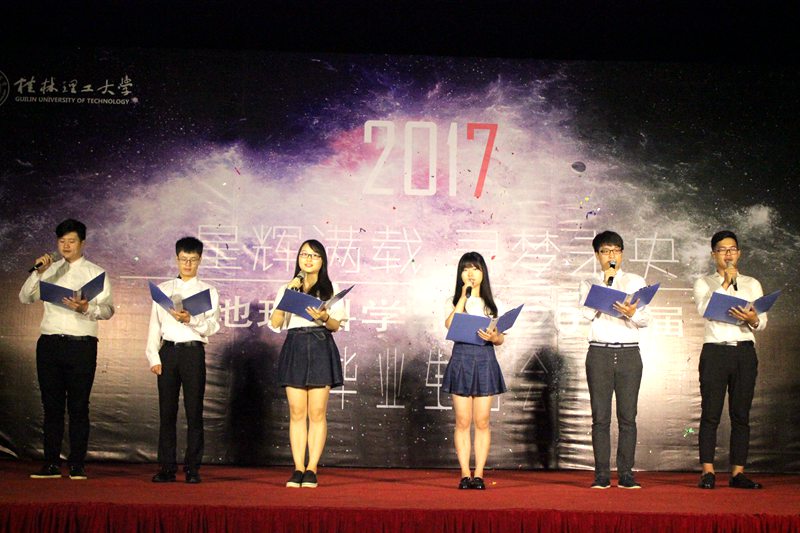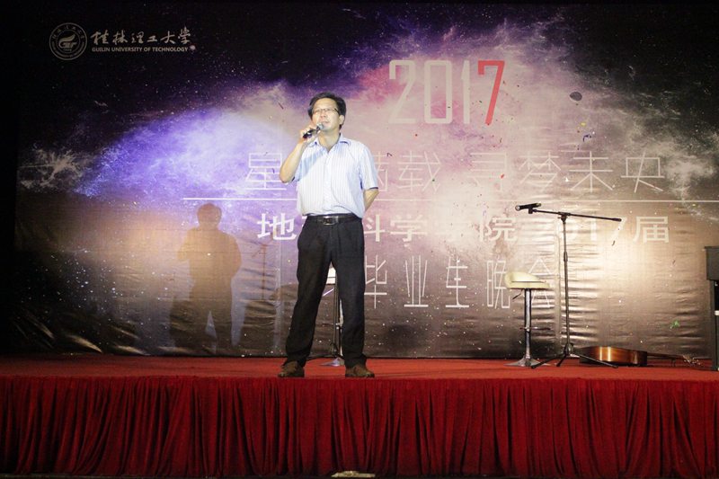 6月6日晚,2138CC太阳集团于雁山校区二号食堂旁篮球场举办2017年“星辉满载,寻梦未央”毕业主题晚会。学院党委副书记耿俊茂,教育部工程中心副主任陈远荣,学工组长王迎波,资勘教研室主任丁伟,专业老师马莉燕、秦亚等及各年级辅导员与13级毕业生共聚晚会现场。