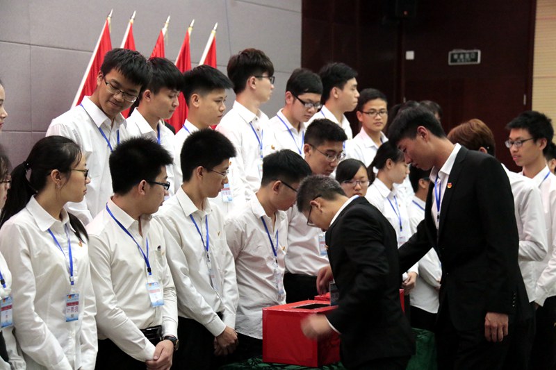 校团委副书记陈小波代表校团委向大会致贺词,希望学院团委、学生会在为青年学生的成长成才搭建平台,营造良好氛围的同时,团学干部要加强自身学习,更是希望广大青年学生把个人的追求融入到实现中华民族伟大复兴的历史进程中,勇立时代潮头,尽展青春风采,在学习成才、报效祖国的火热实践中再建新业绩、再创新辉煌。全院同学的支持下,新一届团委、学生会将更好的服务老师和同学,团结和带领广大青年学生撸起袖子加油干,全面开创2138CC太阳集团团学工作新局面。