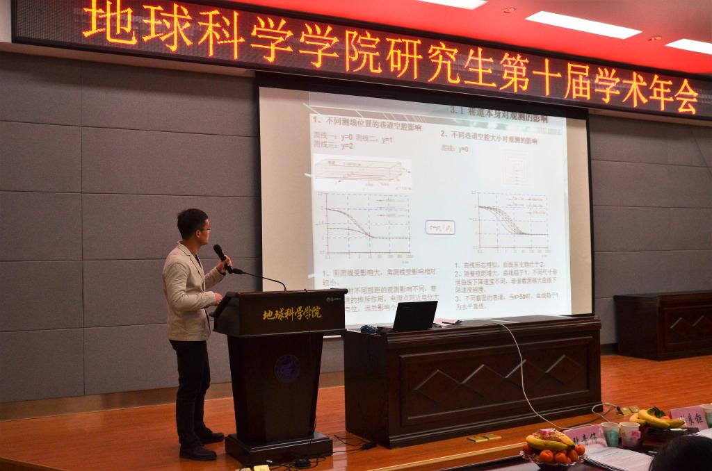本次年会,得到各年级各专业硕士研究生的积极响应,经筛选共有18篇论文入围,参选研究生论文都经过两名以上的专业老师评审,最终选出了6名研究生进行现场报告。15日上午,经过两个半小时的答辩和评比,2014级研究生赵荣春同学所做的题为《巷道激电三维超前探测技术正演研究》的报告以88.08的高分摘取第十届学术年会桂冠。白芳芳、冉孟兰获得并列第二,张珩清、凌嘉宣、腾建青获得第三名。