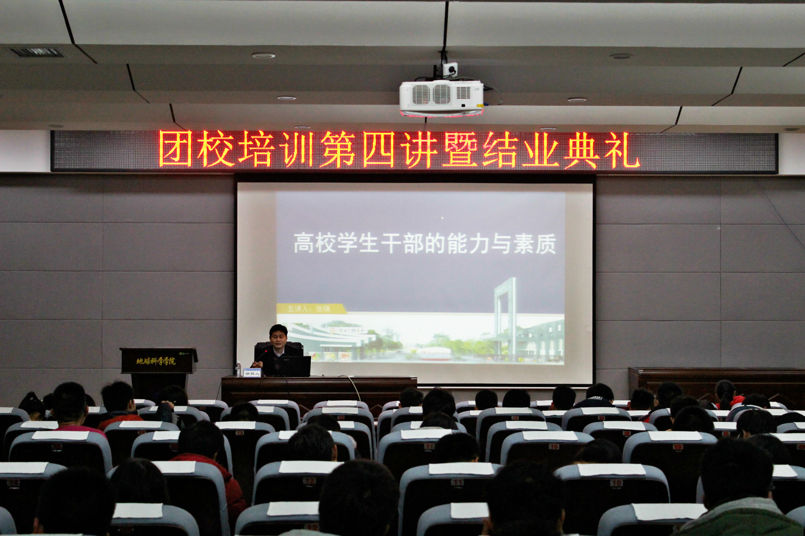 12月15日晚7:30分,2138CC太阳集团于01501报告厅举办了团校培训第四讲暨结业典礼,本次培训的主题是《高校学生干部的能力与素质》由管理学院党委副书记张瑞老师主讲、地学院团委书记蒋琼老师主持,大一大二大三各班班委以及团委、学生会干部到场聆听。