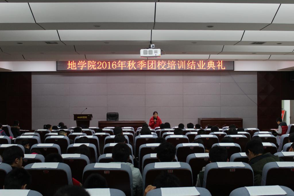 讲座结束后进行了地学院团校培训的结业典礼,蒋琼老师在典礼上致结业词。最后大家全体起立齐唱国歌,在庄严的国歌声中圆满结业。