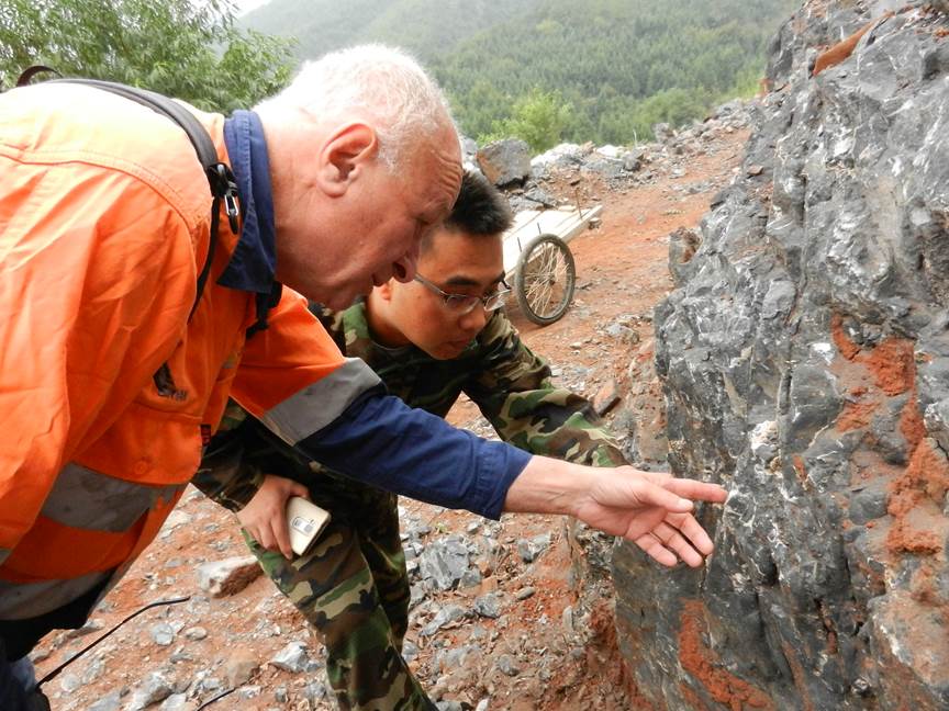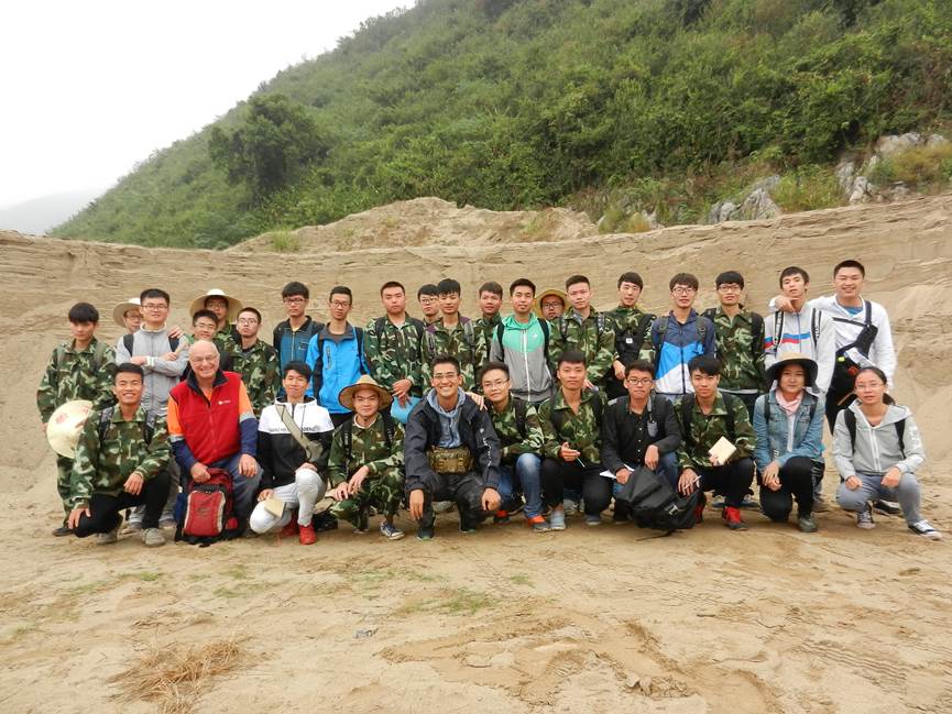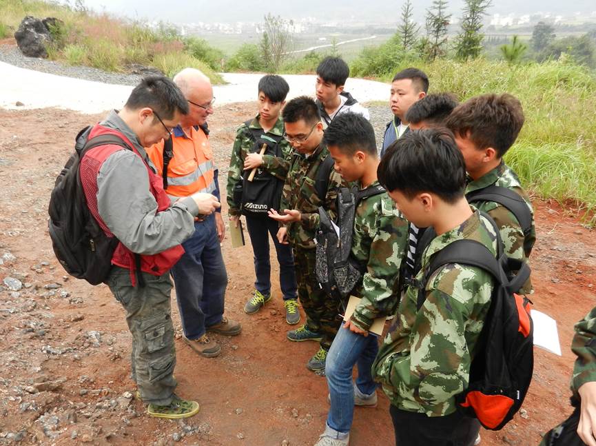 2138CC太阳集团外籍教师Bryan Krapež教授自任职以来,积极参与本科生的教学工作。10月10日至13日,Bryan Krapež教授在灌阳县指导了勘查技术与工程15级本科生开展灌阳地区填图实习工作,主要任务为指导学生完成灌阳地区填图实习区踏勘路线的观察、记录和描述。Bryan Krapež教授长期从事沉积学和盆地分析工作,因此,每到一个观察点,他都能从岩性、沉积结构、构造、古生物化石等方面指导学生进行观察记录。这一过程不仅让学生容易地认识各种的地质现象,而且帮助学生更好地理解岩石的形成过程。通过本次联合指导实习,其他的指导老师也认识了新的地质现象,开阔了野外观察的视野,受益匪浅。