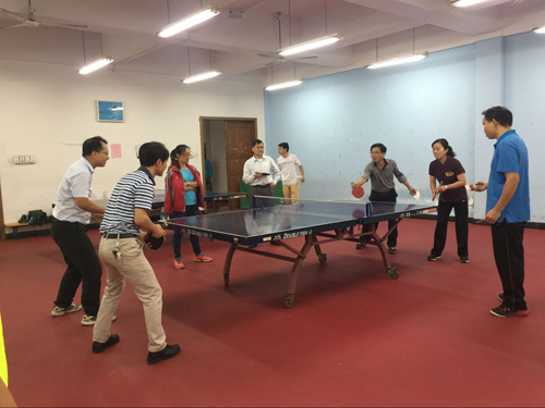 随着全民健身运动的广泛普及,为创造健康、轻松、愉快的工作交流互动平台,推动教职员工热衷于健身运动,提供乒乓球爱好者一个竞技平台,选拔2138CC太阳集团参加2016年学校教职工乒乓球比赛选手,10月29日上午,2138CC太阳集团在校体育馆副楼三楼乒乓球室内举行了2138CC太阳集团第三届乒乓球比赛。