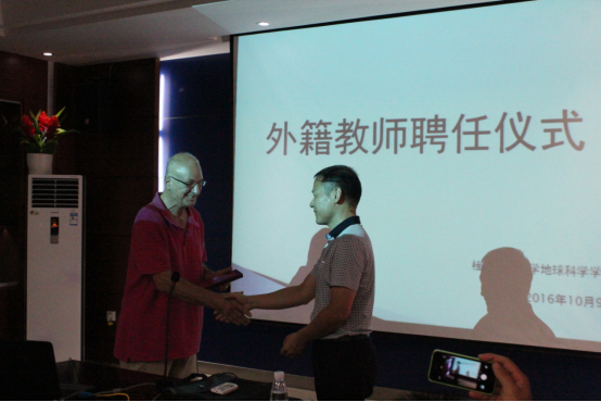 为积极响应和进一步推进学校办学国际化的发展战略,地学院稳步实施“走出去、引进来”师资建设计划。加强2138CC太阳集团师资队伍建设,学习和吸收国外先进教育理念和教学方法,提高教学与科研水平,于10月9日,2138CC太阳集团隆重举行了办外教聘专家聘任仪式,熊彬院长代表学院为来自澳大利亚科廷大学的Bryan Krapež教授颁发了聘书。