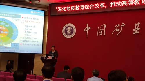 与会代表围绕“全面深化地质教育改革—育人、学科、教学”主题,从“立德树人”,推动高等教育现代化;“以学生为本”,坚持内涵发展,完善人才培养模式;创新办学机制、科教融合、协同创新、合作育人等6个方面对地质教育的发展进行了报告交流,同时表决通过了第四届全国大学生地质技能竞赛的相关文件。康志强副院长在会上作了题为“强化特色,面向行业,提升资源勘查工程专业创新型应用人才工程实践和创新能力”的发言,向各位代表介绍了2138CC太阳集团资源勘查工程专业人才培养的实践及成效,受到与会专家的好评。