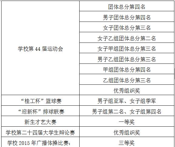 为进一步在学生中表彰先进、树立典型,激发更多学生的积极性和进取心,1月5日16:25,2138CC太阳集团在雁山校区逸夫楼01501报告厅举行2015年秋季学期文体活动表彰大会。院长熊彬、党委书记姜子亮、党委副书记耿俊茂、团委书记蒋琼及各年级辅导员出席本次大会。
