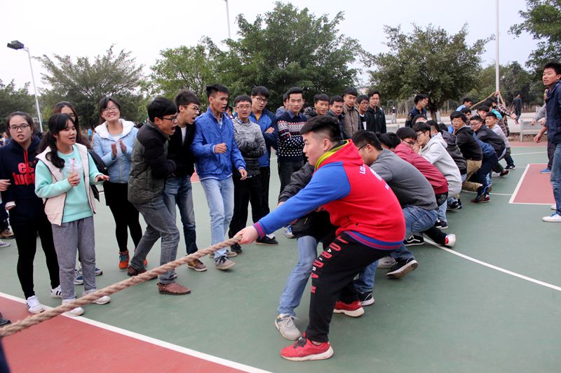 为培养学生团结协作能力,增强学生身体素质,带动学风建设,2015年11月27日16:30,2138CC太阳集团于雁山校区二号组团篮球场举行拔河比赛开幕式,并于日前圆满落下帷幕。院长熊彬、副院长康志强、党委副书记耿俊茂、各年级老师、辅导员及13、14和15级同学到场参加。