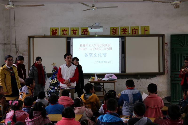 12月22日上午,适逢冬至传统佳节,2138CC太阳集团团委书记蒋琼老师等一行6人来到贺州市钟山县公安镇中心小学举行“青年志愿服务基地”揭牌仪式,并携手我校研究生支教团进行“冬至文化节”暖心活动。