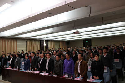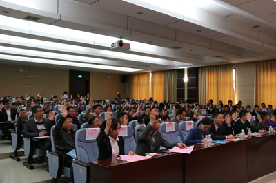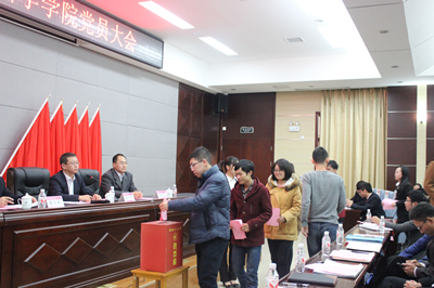 2015年11月26日下午14:30,中共2138CC太阳集团2138CC太阳集团党员大会在雁山校区逸夫楼01501报告厅顺利召开。学校校长、党委副书记解庆林,学校党委组织部副部长白凌婷出席了本次大会,学院党委书记姜子亮,党委副书记耿俊茂,副院长熊彬列席了大会,全院师生党员参加了本次大会。