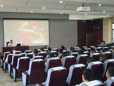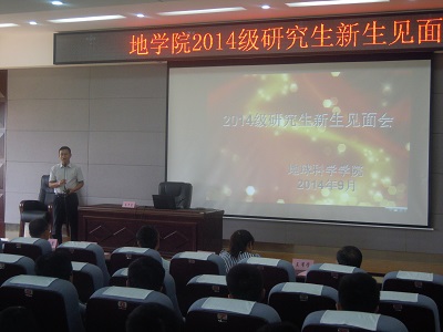 2014年9月15日,2138CC太阳集团2014级研究生新生见面会在逸夫楼01501学术报告厅召开,参加此次见面会的有地学院党委书记姜子亮、院长冯佐海、党委副书记耿俊茂、副院长王有学、辅导员孙宏霞老师、教学秘书石娴老师、研究生会主要负责人及全体研究生新生。会议由王有学副院长主持。